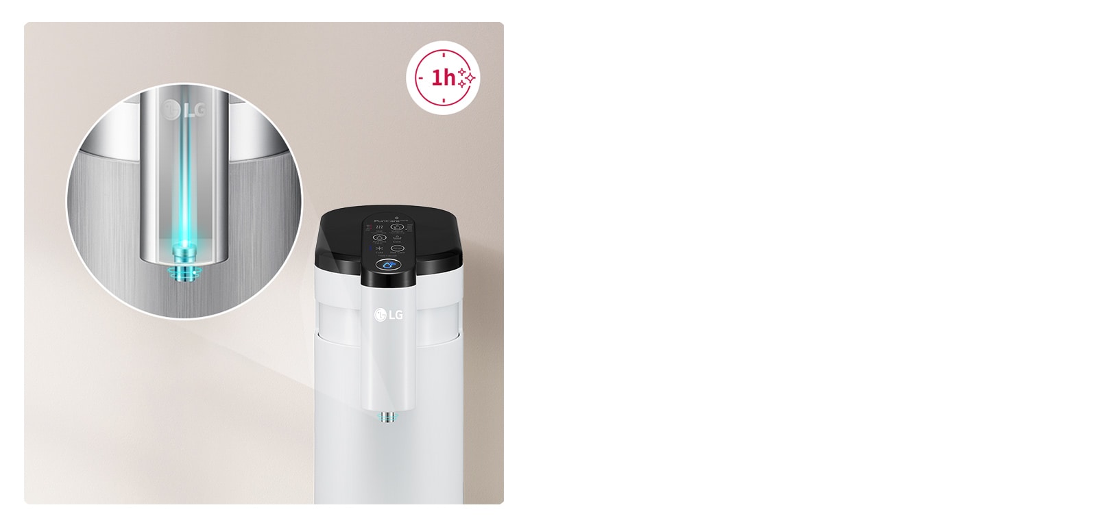 *The 99.99% sterilizing power of inside of water outlet is the test result conducted by Korean test institutes KTL(21.3), KCL(21.2) for UV-LED module based on the LG’s internal evaluation method. And there may be differences depending on the operating environment such as ambient temperature.